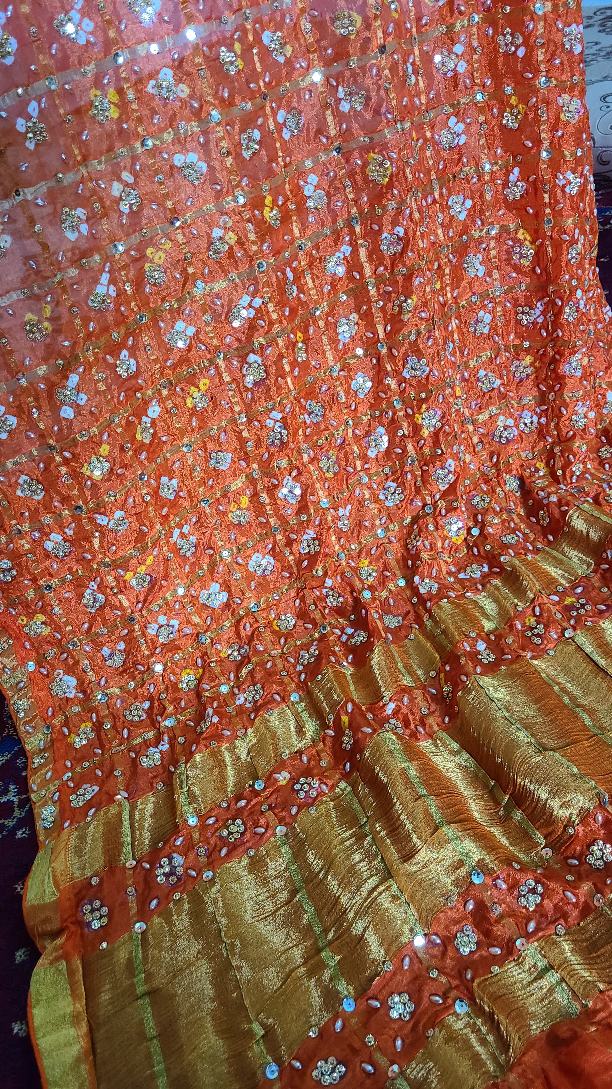 Chunri Gajji Silk Dupatta | Festive Favorite | Orange